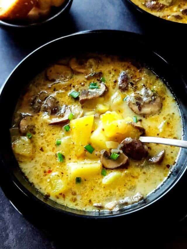 Click the link below to get the full recipe for this potato and mushroom soup and many other easy vegan and vegetarian recipes from around the world.